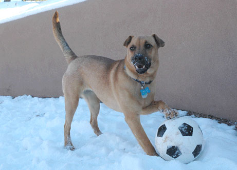 At the time, I was having trouble imagining her bonding with anyone. She was content to spend her days alone in the yard. Some nights it took me a half hour or more to get close enough to leash her and bring her inside. Even when it was snowing, she preferred to dig a hole and curl up in it, oblivious to the snowflakes accumulating on her. Once I got her inside (she refused to let the Scientist get close enough to leash her), we had to lie flat on the floor and be very quiet to get her to approach us voluntarily.