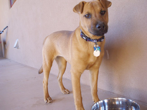 Shortly after arriving home, I took her out into our walled-in backyard. When I turned on the hose to water some newly planted trees, she jumped the three-foot wall and bolted.